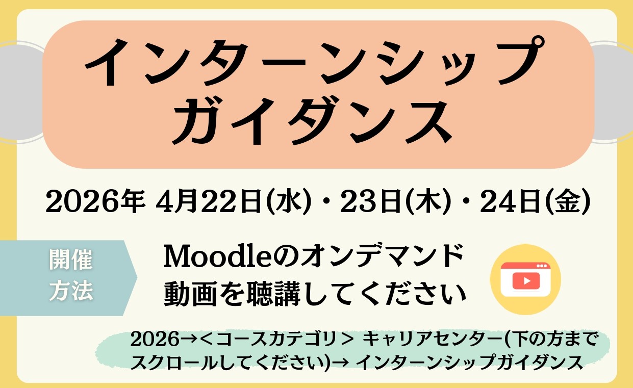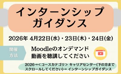 - 23日(水)~24日(金) … インターンシップガイダンス(オンデマンド)