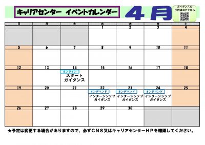 キャリアセンター4月の<学内>イベント・全学ガイダンスのお知らせ