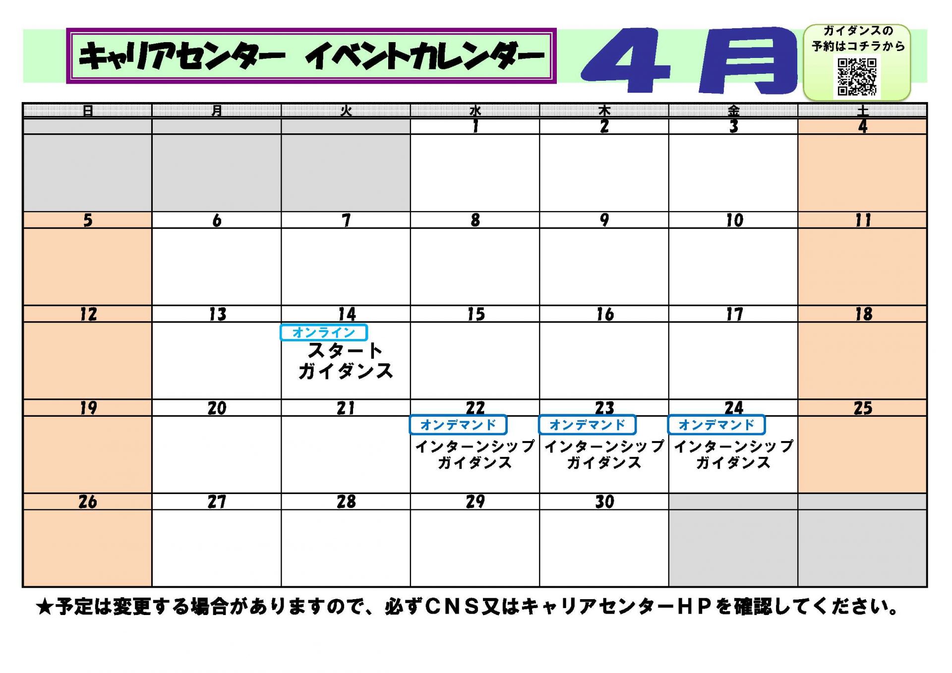 4月は下記のガイダンスを予定していますので、ぜひご参加ください!
